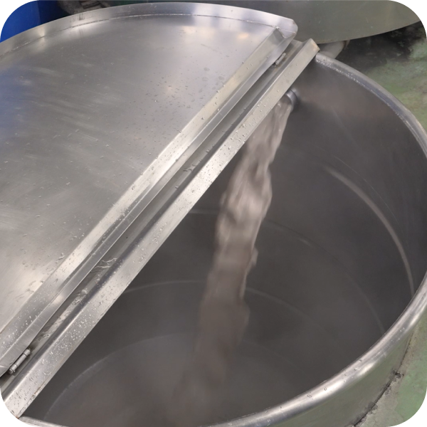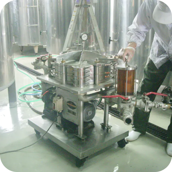 チェック済みのもろみ粕は、搾り機にかけて丁寧に絞られます。この段階で液体が抽出され、もろみ酢としてのベースが形成されます。